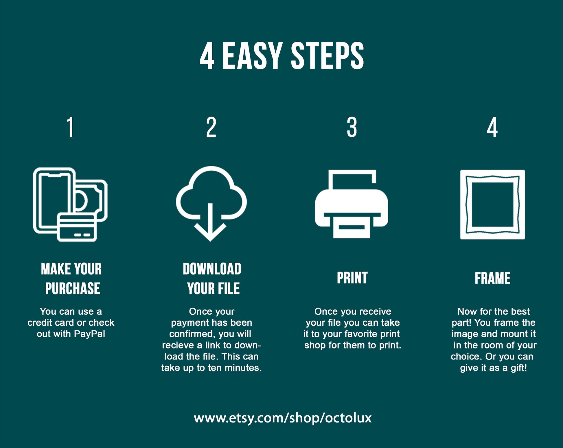 You will receive 3 files that are different sizes to fit the frame of your choosing. The image comes in a 3x4 Ratio, 2x3 Ratio, and 4x5 Ratio. The files are labeled accordingly. If you have any questions, please utilize a secure channel here and send us a message.
